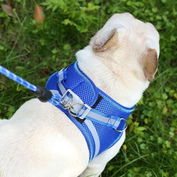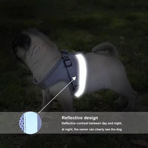 Az állítható fényvisszaverő öv és póráz puha, kényelmes és légáteresztő hálós szövetkialakítással rendelkezik, amely fokozza kedvence viselési élményét.