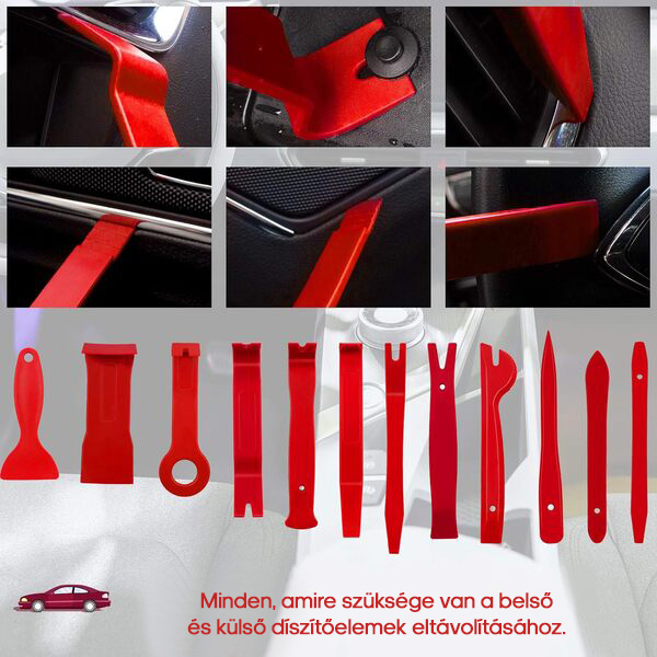 Az autó kárpitozásának eltávolítása ijesztő lehet a megfelelő szerszámok nélkül. Készletünk 38 különböző szerszámot tartalmaz, amelyeket kifejezetten a belső és külső kárpitok egyszerű és biztonságos eltávolítására terveztek. Segítségével könnyen elvégezheti saját maga a kisebb javításokat és beállításokat, ami tökéletes a hosszú utazások során felmerülő váratlan problémák kezeléséhez.