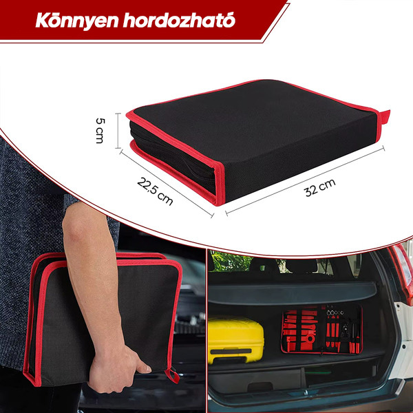 A szerszámok tévesztése bosszantó és időigényes lehet. A készlethez egy hordozható, cipzáras tok tartozik, amely minden szerszámot rendszerezve és könnyen hordozhatóan tart, így soha többé nem veszít el egy darabot sem.