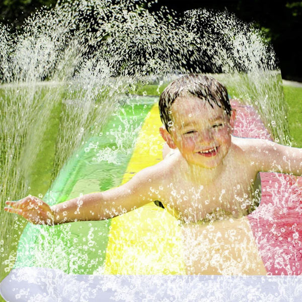 A locsolórendszerrel ellátott vízicsúszda kiváló kültéri szórakoztató termék.