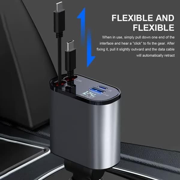 A töltő kompakt mérete biztosítja, hogy bármilyen járműben tökéletesen elférjen, így könnyen hozzáférhető marad anélkül, hogy rendetlenséget okozna.