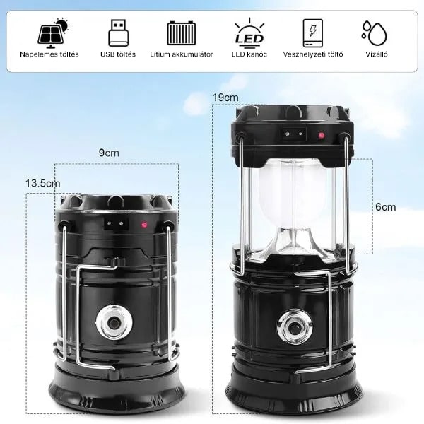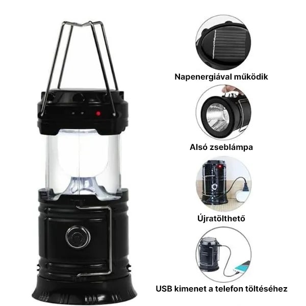 Napelemes Újratölthető Kemping Lámpa + Zseblámpa | CAMPGLO