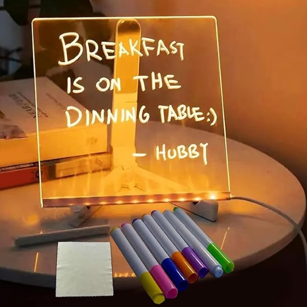 Nehezen találja a módját, hogy szeretetteljes üzeneteket hagyjon családjának? Világító üzenőtábláinkkal nem csak szeretetteljes üzeneteket hagyhat gyermekeinek vagy szeretteinek, hanem lehetőséget biztosítunk üzenetek írására és rajzok készítésére is. Legyen szó akár egy emlékeztetőről, hogy legyen jó napjuk, vagy egy aranyos firkáról, amely feldobja a hangulatukat, ezek a táblák kreatív és interaktív módját kínálják a kommunikációnak és a szeretet kifejezésének. Hagyja, hogy szerelme ragyogjon a világító üzenőtábláinkkal!