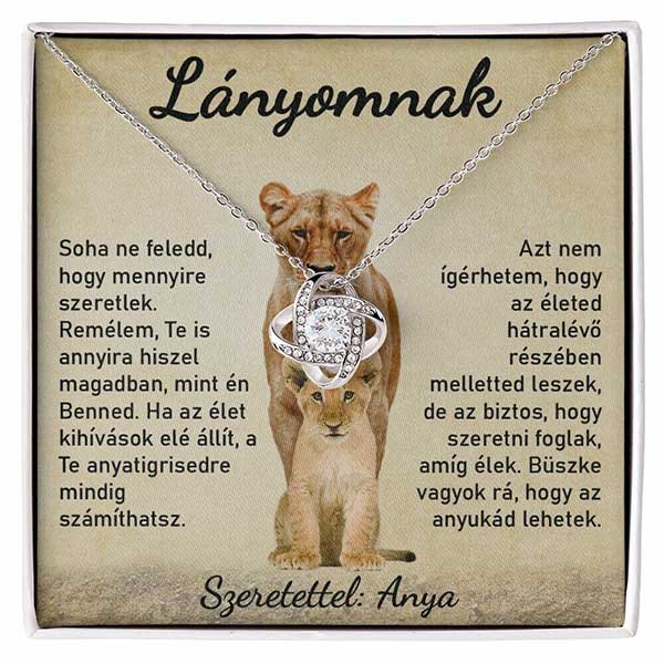Soha ne feledd, hogy mennyire szeretlek. Remélem, Te is annyira hiszel magadban, mint én Benned. Ha az élet kihívások elé állít, a Te anyatigrisedre mindig számíthatsz. Azt nem ígérhetem, hogy az életed hátralévő részében melletted leszek, de az biztos, hogy szeretni foglak, amíg élek. Büszke vagyok rá, hogy az anyukád lehetek.
