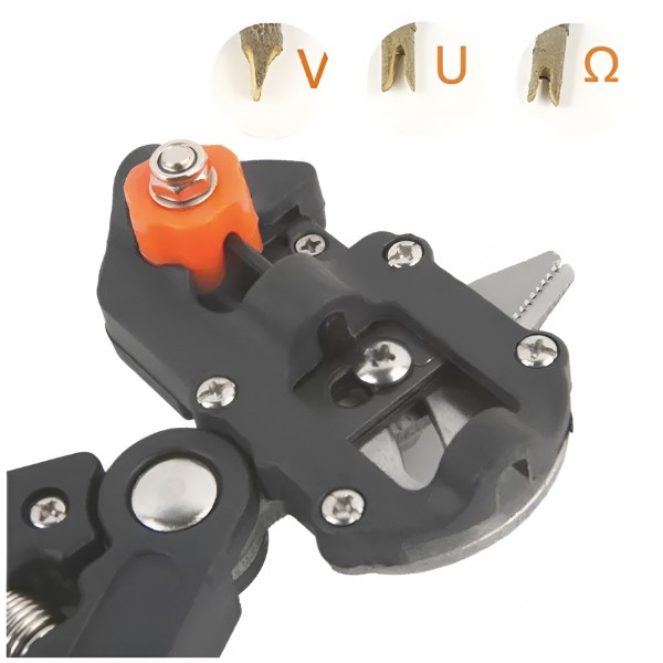 Ez az eszköz 3 cserélhető pengével (V, U, Ω) rendelkezik, amelyek lehetővé teszik különböző típusú vágások végrehajtását, így tökéletes különféle metszési és oltási feladatokhoz.