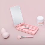 Az ecsetkészlet és a LED-es tükör tökéletesen elfér a táskájában, így könnyen javíthatja a sminkjét, bárhová is viszi a nap.