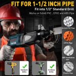 Egyszerűen csatlakoztatható bármilyen szabványos fúrógéphez – nincs szükség speciális szerszámokra. Ideális PVC-, réz-, alumínium- és rozsdamentes acélcsövekhez.