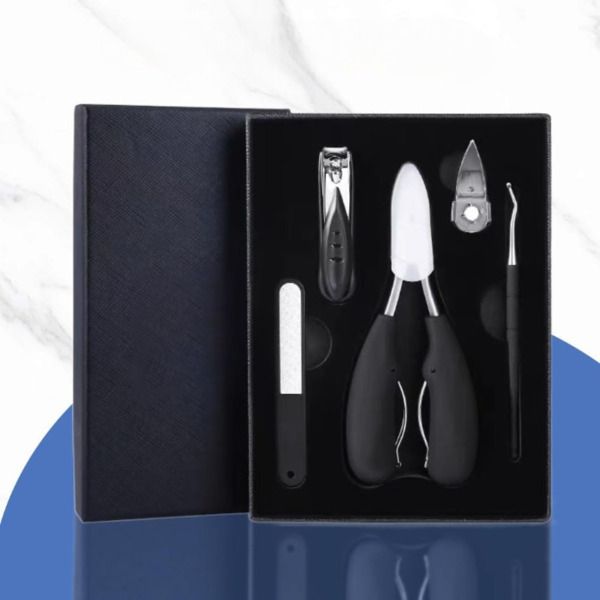 Kifejezetten vastag és benőtt körmökhöz tervezve, a készlet eszközei biztosítják a szükséges erőt és precizitást a nehéz körömápoláshoz, kényelmetlenség vagy sérülés kockázata nélkül.