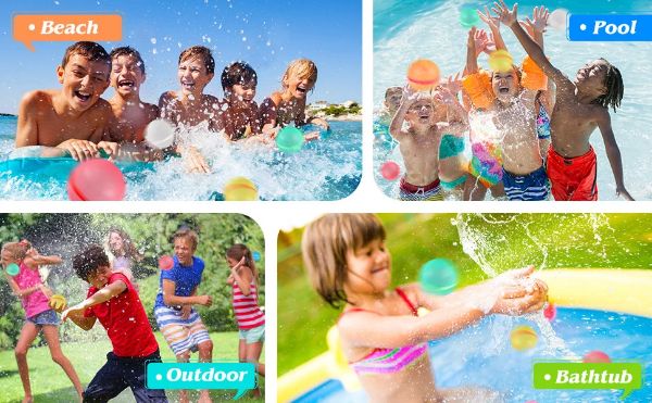 Korosztálytól függetlenül, újrahasználható vízilufijaink izgalmas és élvezetes módszert kínálnak a forróság legyőzésére a perzselő nyári napokon. Végtelen lehetőségeket kínálnak a játékok és tevékenységek széles skáláján való részvételre, mint például a vízilufi dobálások, váltóversenyek és medencés vízi harcok.