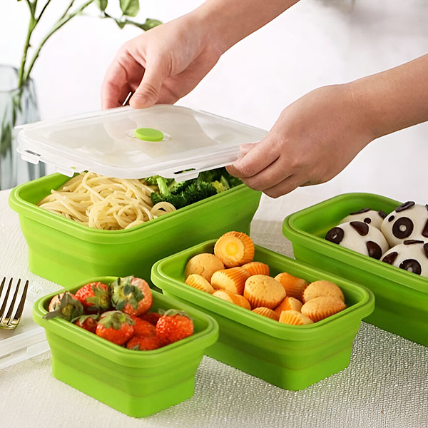 A kiváló minőségű, BPA-mentes szilikonból készült tárolók biztosítják, hogy az ételek frissek és káros vegyi anyagoktól mentesek maradjanak.