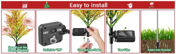 A napelemes fényfa folyamatos világítás és villogás üzemmódot kínál. Telepítés előtt egyszerűen kapcsolja át a kapcsolót, amely a napelem alján található. A Solar Cypress Tree Light meghitt fényt áraszt, amely ünnepi és barátságos hangulatot kölcsönöz teraszának, kertjének vagy erkélyének.